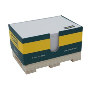 Ahşap paletlerin tamamı el işçiliği ile kavak ve ağaçtan üretilmektedir. Ayrıntılı aşamalardan geçirdiğimiz ahşap paletler istenilen ölçüye göre yapılmaktadır. Ahşap paletlerin boyutlarına göre farklı yaprak sayıları belirleyerek üzerine küp bloknot yapıştırabilir. Örneğin 8×8 cm ölçülerinde yapılan bir paletin üzerine aynı ölçülerde farklı yaprak sayıları ile bloknot yapılmaktadır. Bloknotların her sayfasına ofset baskı yaparak dört tarafına da firmanızın logosunu ve bilgilerini tampon baskı ve serigrafi baskı olarak ta uygulayabiliyoruz. Paletli bloknotlar firmanızın tanıtımı için oldukça önemli bir promosyon ürünüdür. En çok istenilen ahşap palet ölçülerimiz 6 x 8 cm, 8 x 8 cm, 9 x 9 cm, 10 x 10 cm, 11,5 x 8 cm ve 12 x 8 cm dir. Detaylı bilgi almak için info@dengematbaa.com.tr adresine mail oluşturabilir veya 0212 255 86 40 numaralı telefonumuzu arayarak bilgi alabilirsiniz.